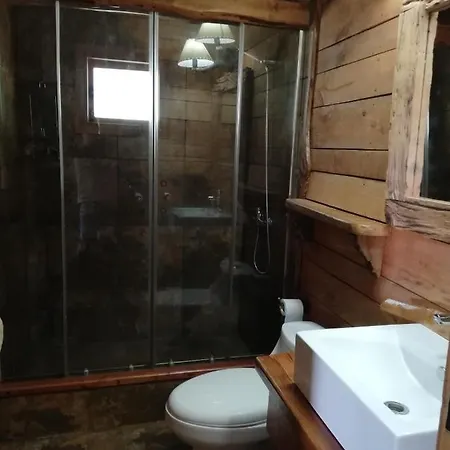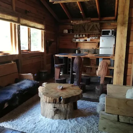 The 1-bedroom Cabana Rustica 2 Maravillosa,Con Troncos Nativos, Con Orilla De Rio Trancura is located around 4 km from Saltos del Rio Turbio and allows guests to enjoy fishing.